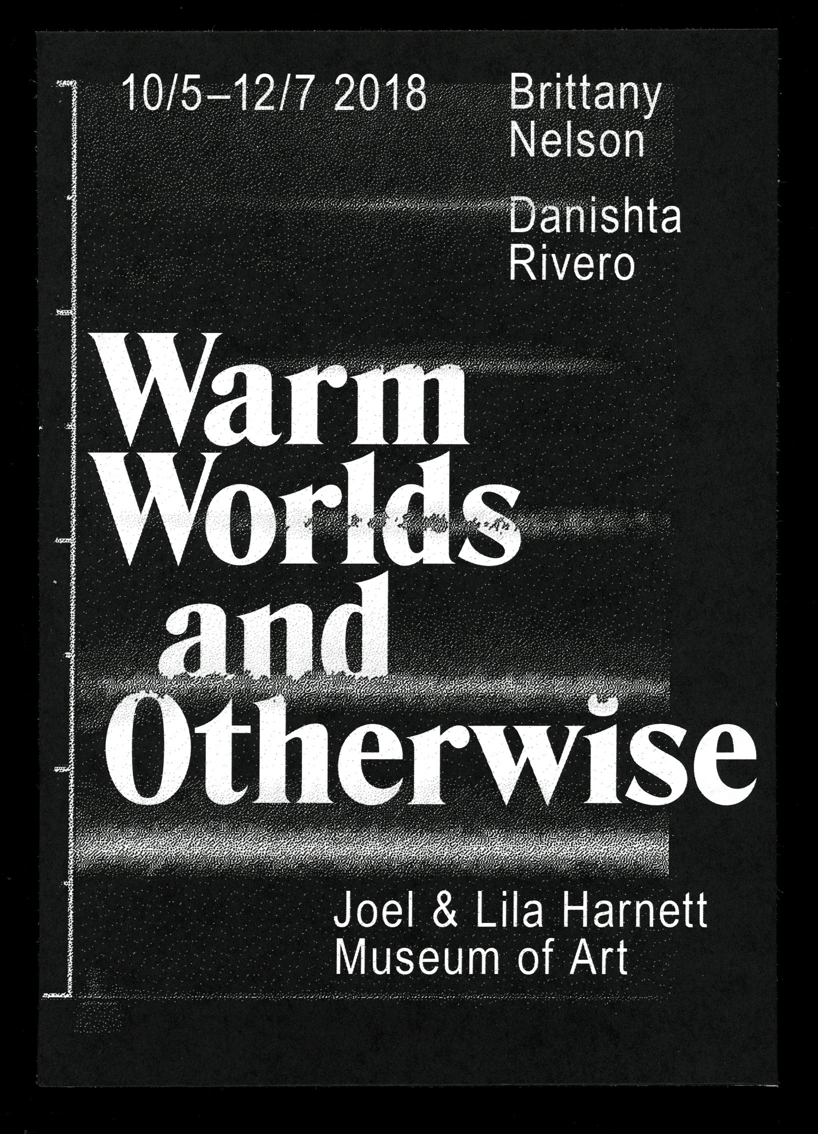 Exhibition identity and publication design for Warm Worlds and Otherwise at University of Richmond Museums; Richmond, VA. Featuring the work of Brittany Nelson and Danishta Rivero.